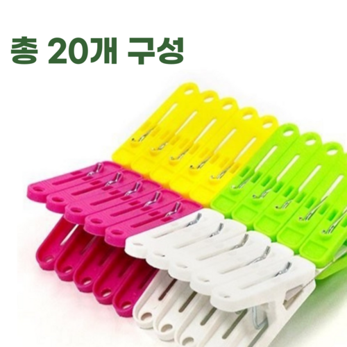 컬러 랜덤 55mm 중형 빨래 집게 건조 고정 20개입