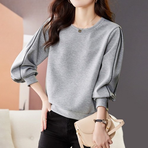 지디오 여성 긴팔 맨투맨 간절기 티셔츠 라운드넥 두줄포인트 퍼프 소매 소프트 루즈핏 베이직 봄 가을 긴팔티