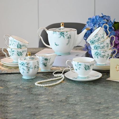 도자기 티 세트/명품 찻잔세트/ 성인용 6인용 ACMLIFE 티 세트 - 컵 블루 (Color-Blue-Leaf-21), 1개