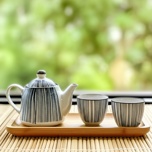 블루라인패턴 도자기 다기세트 (주전1P+다기잔4P)