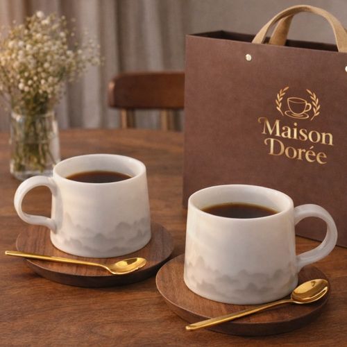메종도레 커피 머그컵 선물세트 (쇼핑백 포함), 2세트, 산수화_화이트