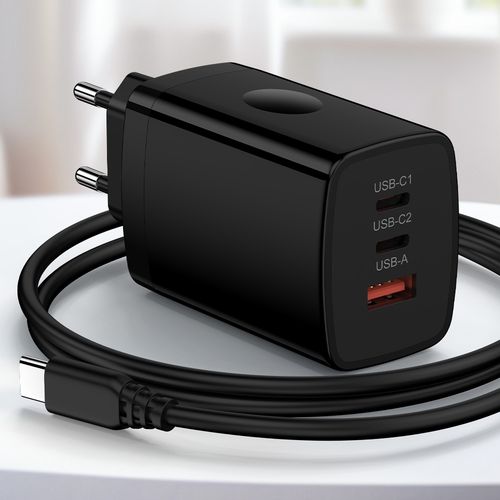 ANNIBER PD3.0 PPS2.0 QC3.0 GaN 65W C타입 3포트 초고속 멀티 충전기+PD 60W 충전 케이블 아이폰 삼성 갤러시 호환, 1세트, 블랙