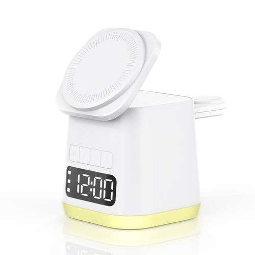 HULULU 무선 3in1 고속 충전기 LED 시계 아이폰 삼성 갤럭시 호환, 1개, 화이트