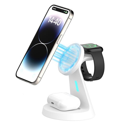 뉴클 3IN1 맥세이프 마그네틱 무선 고속충전 스탠드 충전기, 화이트