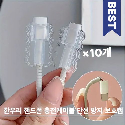 한우리 충전 케이블 단선 방지 보호캡 / 실리콘 커넥터 보호, 아이폰 C타입 호환, 10개, 투명