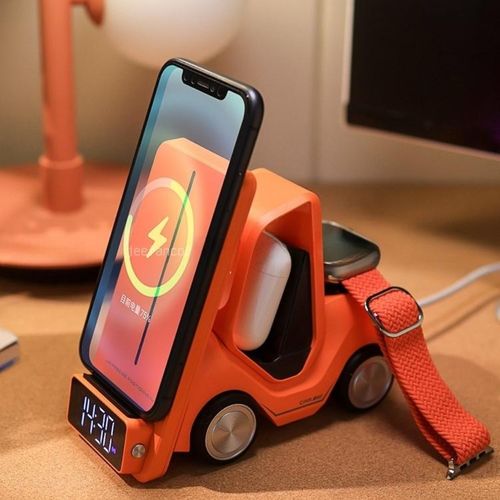 탁상알람시계 지게차스타일 3 in one 무선 충전기 워치 충전 에어팟충전 거치대 충전독