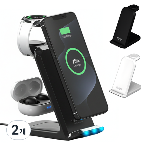 로시오 23W 고속 3in1 무선충전기 갤럭시워치 전용 스마트폰 버즈 동시충전 거치대 1+1, 2개, 화이트