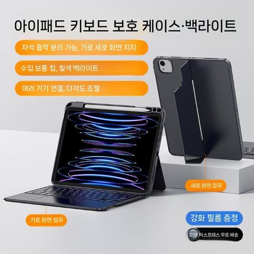 모키보 퓨전키보드 아이패드키보드케이스 마우스 필요없는 블루투스 무선 휴대용 저소음 미니 추천 - 11인치, 12.9인치, 단일 색상