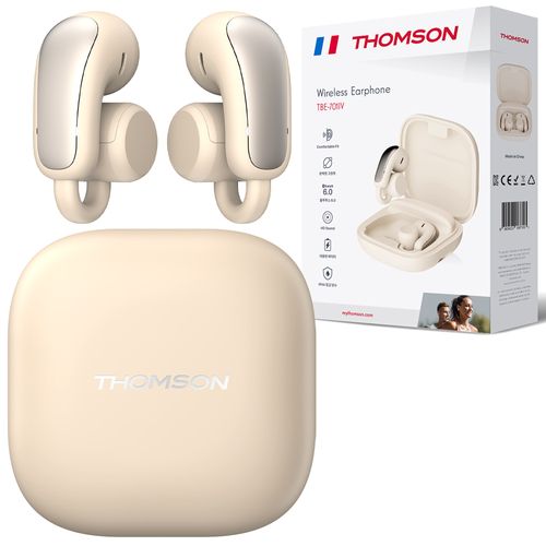 프랑스 톰슨 블루투스 6.0 ENC 노이즈 캔슬링 생활 방수 오픈형 귀걸이 무선 블루투스 이어폰, 아이보리, TBE-701IV