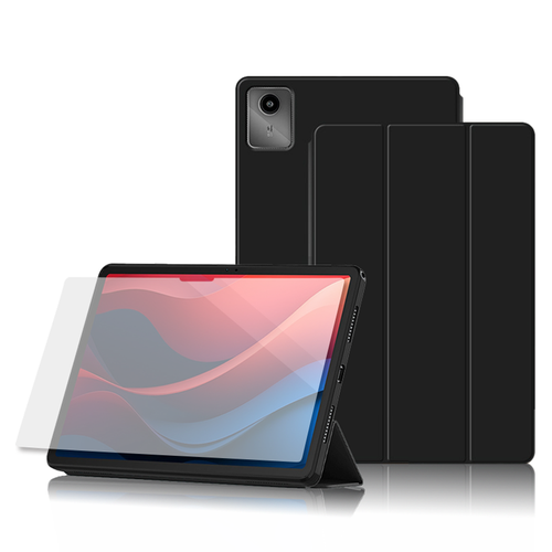 칸탐 레노버 샤오신 패드 2024 가죽케이스+강화유리 세트, 블랙(케이스), 1세트