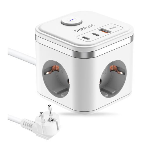 큐브 멀티탭 C타입2개 (Type-c*2)+USB-A PD20W , 3구 고용량 멀티탭MINI 멀티탭 16A, 1개 3680W 1.5m