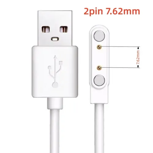범용 2Pin 4mm 7.62mm 강력한 자기 충전 케이블 USB 라인 코드 스마트 시계 검정색 흰색