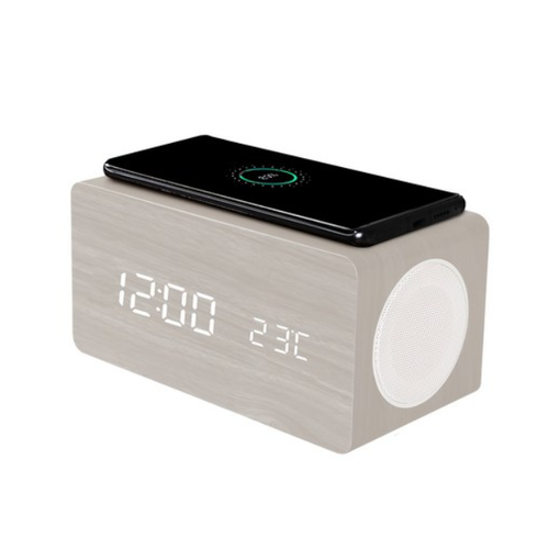 RUNHome 우드 무선충전 블루투스 스피커 LED 시계 알람 거실 캠핑, 원목색