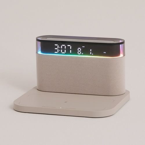 덱스탑 올인원 탁상시계 무선충전 무드등 스피커 알람기능, 1개, 베이지