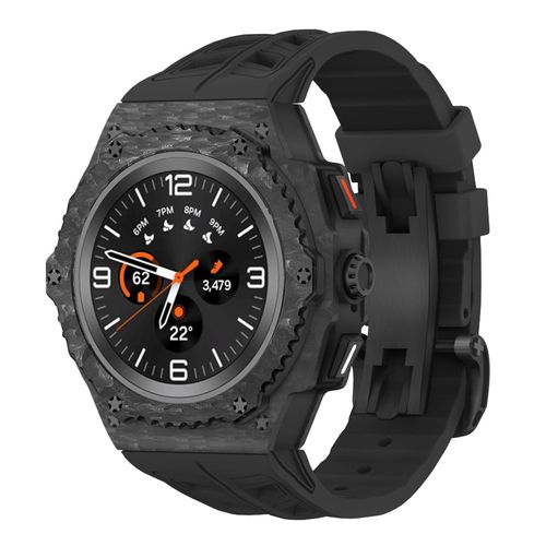 삼성 갤럭시워치8 클래식 호환 일체형 경량 카본 케이스 플루오로탄소 밴드 풀커버 보호 스트랩 시계줄 44/46mm, 블랙