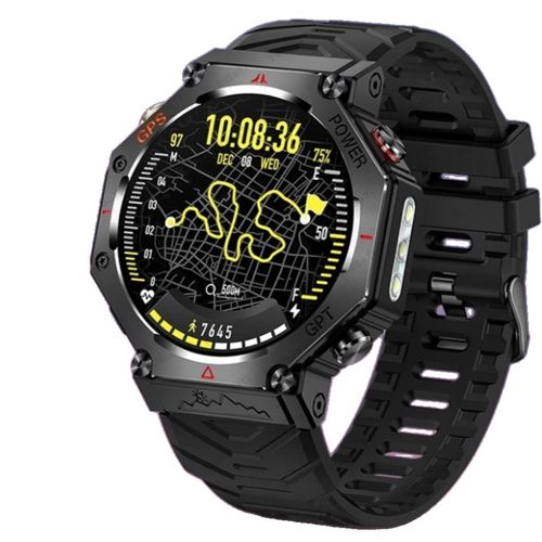 2025 KC91 T-Rex 3 울트라 오리지널 GPS 스마트워치 남성용 10ATM 방수 러기드 군용 스타일 블루투스 통화 피트니스 트래커, 블랙 PU 스트랩