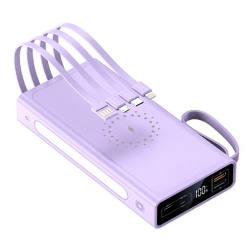 [5시건 당일배송] 60000mAh 슬림핏 고속 무선충전 보조배터리 4in1 케이블 일체형 파워뱅크 랜턴, 퍼플