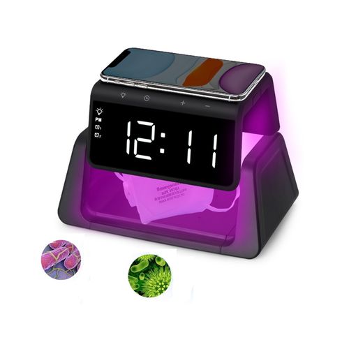 UM2 무드등 알람시계 UV살균 고속 무선충전기 AL700UV, 케이스포함(블랙), 1개