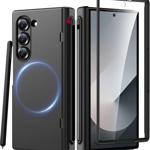 [미국수입정품] Miimall 삼성 갤럭시 폴드 7 케이스, 액정보호필름 및 스타일러스 포함, 경첩 보호 S 펜 홀더, 무선 충전, 군용 등급 튼튼하고 내구성 있는 범퍼 커버,