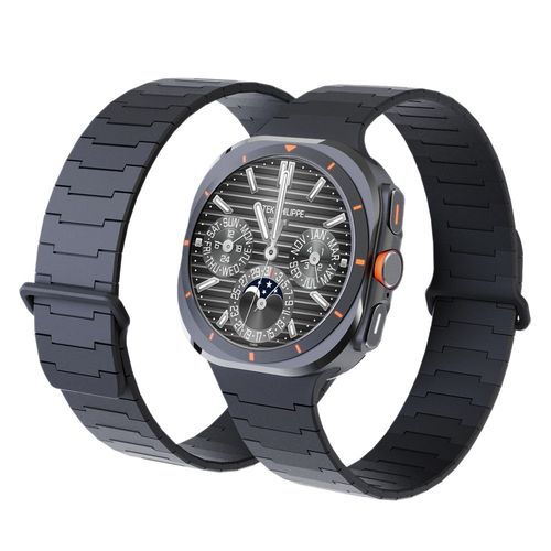 투톤 강력한 마그네틱 갤럭시워치 7 8 울트라 47mm 실리콘 스트랩 자석 밴드, 블랙스틸-(블랙+그레이), 1개