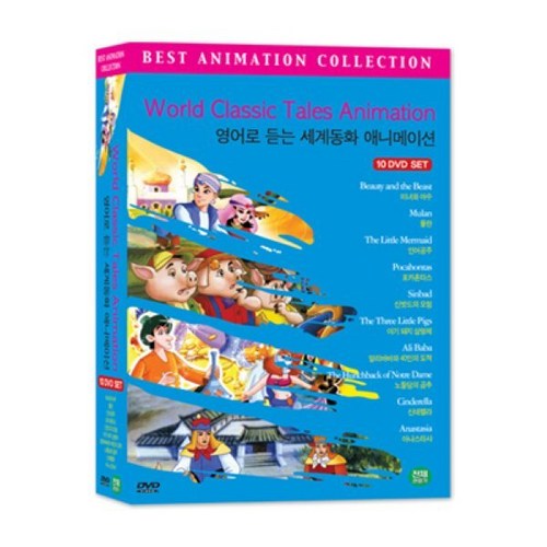 [DVD] 영어로 듣는 세계명작동화 애니메이션 10종 세트 (미녀와 야수+뮬란+인어공주+포카혼타스+신밧드의 모험+아기 돼지 삼형제+알리바바와 40인의 도둑+...