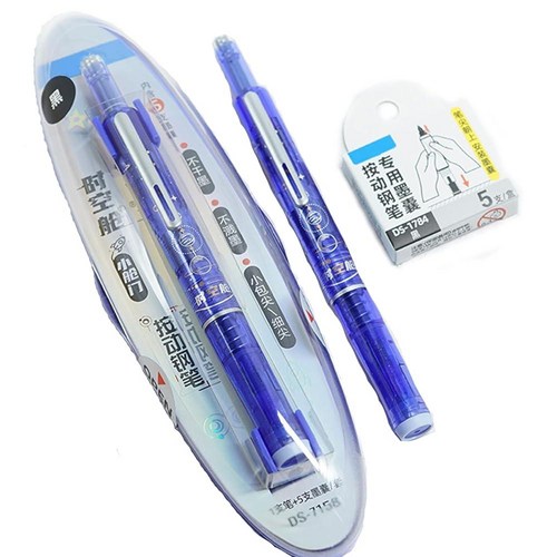[100%정품] 접이식 만년필 0.38mm 파인 펜촉 - 블루 & 블랙 잉크 투명 배럴 리필 가능한 잉크 카트리지 5개 매끄러운 필기 누출 방지 편리함을 위한 클릭 메