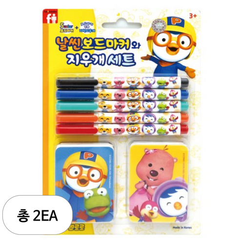 비앤씨 뽀로로 날씬 보드마커와 지우개 세트, 혼합 색상, 2세트