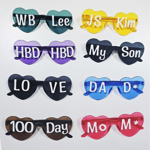 올리브파티 커스텀 레터링 자유문구 하트 선글라스 생일 안경 파티 용품 소품 세트, 1세트, 퍼플(하트안경)