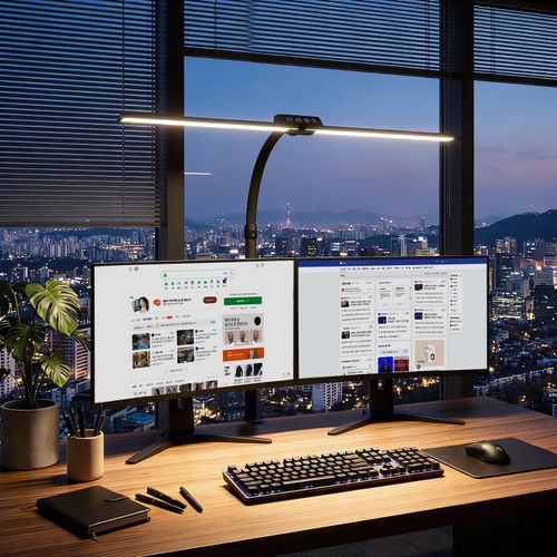 Airwit 책상 와이드 스탠드 조명 LED 모니터 조명 데스크램프 클립형 플렉시블 고휘도 독서용 책상등, 블랙