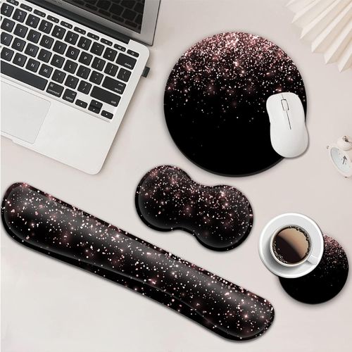 키보드 손목 받침대 및 마우스 지원 패딩 메모리 폼 세트, 컴퓨터 노트북 사무용 내구성 논슬립 베이스, 에르고노믹 패드 귀여운 소가죽 데스크탑 장식