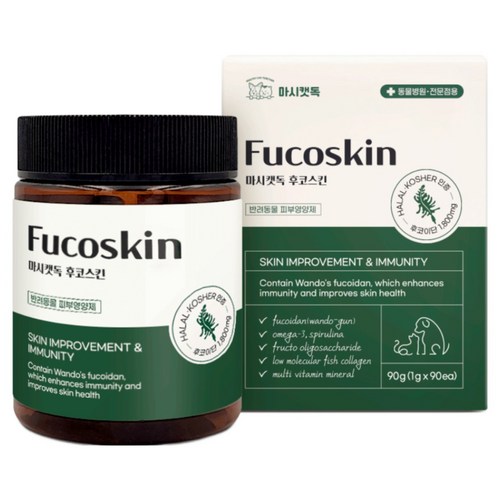 마시캣독 후코스킨 90g 강아지 고양이 피모 모질 피부 개선후코이단 면역력 영양제 노령견 알러지 피부염 습진 아토피
