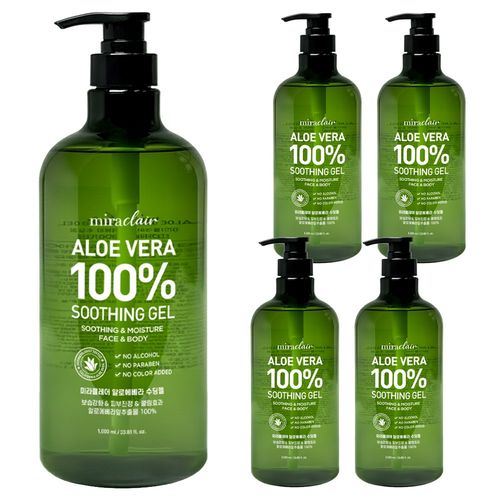 미라클레어 대용량 알로에베라 순도100% 무알콜 수딩젤 수분가득, 5개, 1L