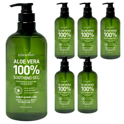 미라클레어 대용량 알로에베라 순도100% 무알콜 수딩젤 수분가득, 6개, 1L