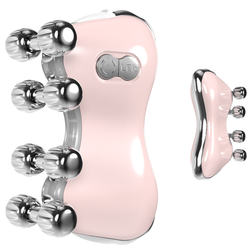 Leeko EMS 페이스 롤러 괄사 마사지기 LED 광케어 다기능 전동 피부 마사지기 바디 마사지기 45도온열 곡선 얼굴 리프팅+8개의 금속 마사지 롤러, 핑크