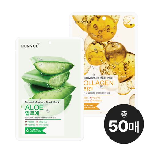 은율 내츄럴 마스크팩 알로에 25매+콜라겐 25매, 1개, 50개입