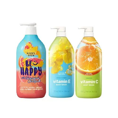해피바스 스마일 바디워시 자몽오렌지 900g + 생귤 비타민C 750g + 유채꽃 비타민E 750g 각1개 (총3개)