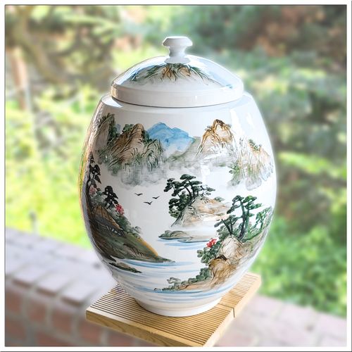 여주흙도예_백자 쌀독 항아리 20Kg 산수화 항아리형, 혼합색상