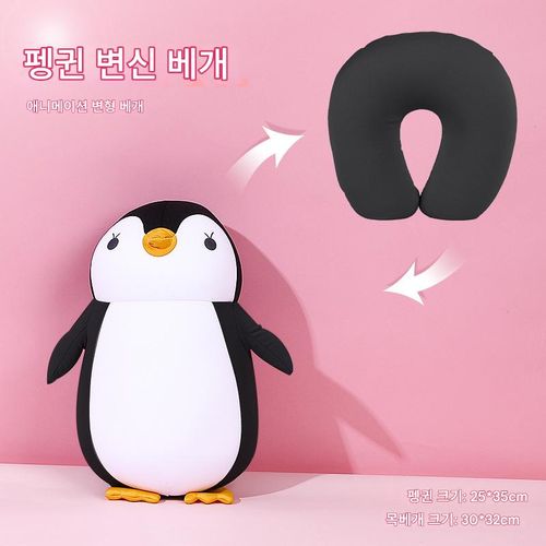 글로벌마켓 휴대용 여행용 통풍 목베개, 블랙펭귄