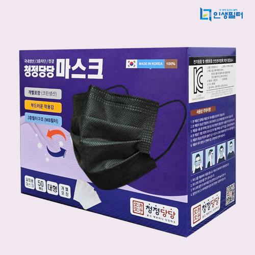국산 일회용 마스크 50매 MB필터 블랙/검정 개별포장
