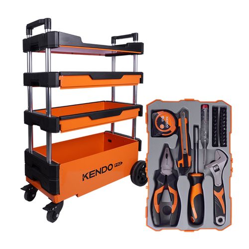 켄도 이동식 철제 공구함 트롤리 90333CO+공구세트 86128CO, 1개