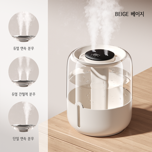 Smart Go USB 듀얼 대용량 가습기 무드등 추음파 가습기 가정용, 베이지