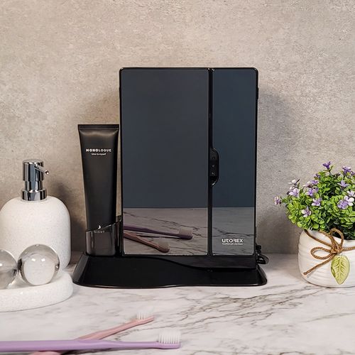 유토렉스 가정용 UV LED 살균 세라믹 히팅 건조기 소독 스탠드 벽걸이 블랙 미러 칫솔 살균기 UTC-83UV