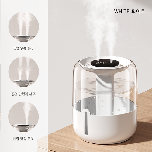 Smart Go USB 듀얼 대용량 가습기 무드등 추음파 가습기 가정용, 화이트