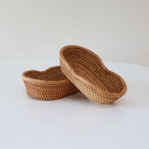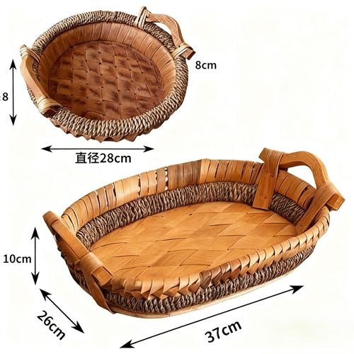 패턴시스템 원형 타원형 수제 바구니 핸드메이드 우드 라탄 빵 과일 수납함, 1개, 원형+타원형
