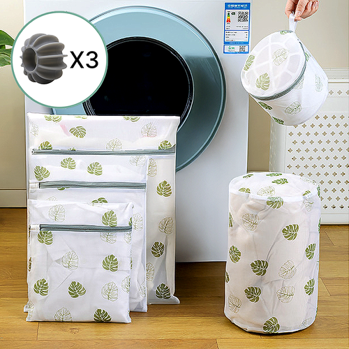 아임코지 메쉬 사각 세탁망 세트 | 대형 세탁볼3p 포함, 5개, 그린리프