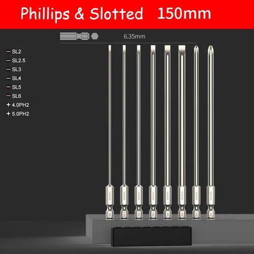 일자형 스크루 드라이버 비트 50mm/75mm/100/150mm 긴 자기 팁 스크루 드라이버 플랫 헤드 비트 S2 스틸 1/