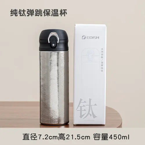 450ml 순수 티타늄 절연 컵/진공 플라스크(바운스 캡 및 필터 스크린 포함) 이중층 항균 물병