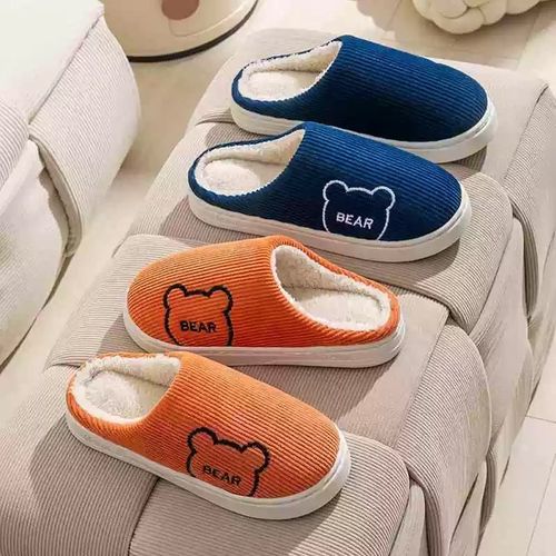 가엔가 1+1 베어 코듀로이 실내 털 슬리퍼 거실화 실내화 층간소음 방지 겨울 심플 거실화