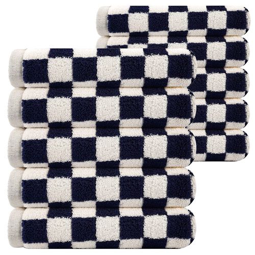 코튼앨리 선염 디자인 호텔수건 40수 200g 코마사 최고급 타올, 10개, 블루체크