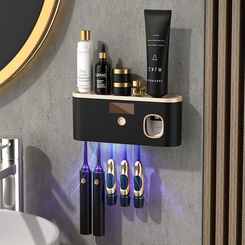 SERENDI 휴대용 UVC 칫솔살균기 히팅+팬건조 1인용 무타공 벽걸이 USB-C충전, 블랙